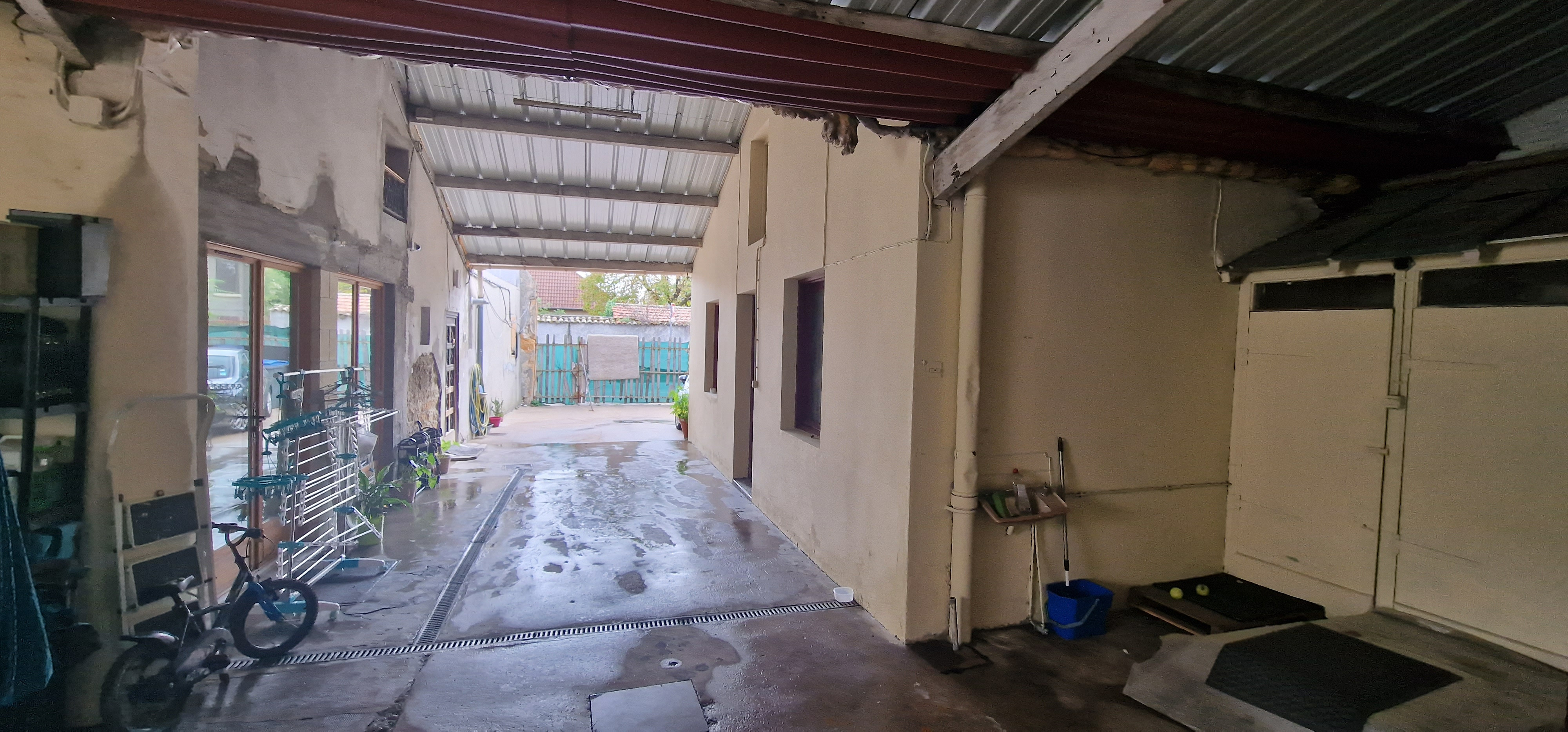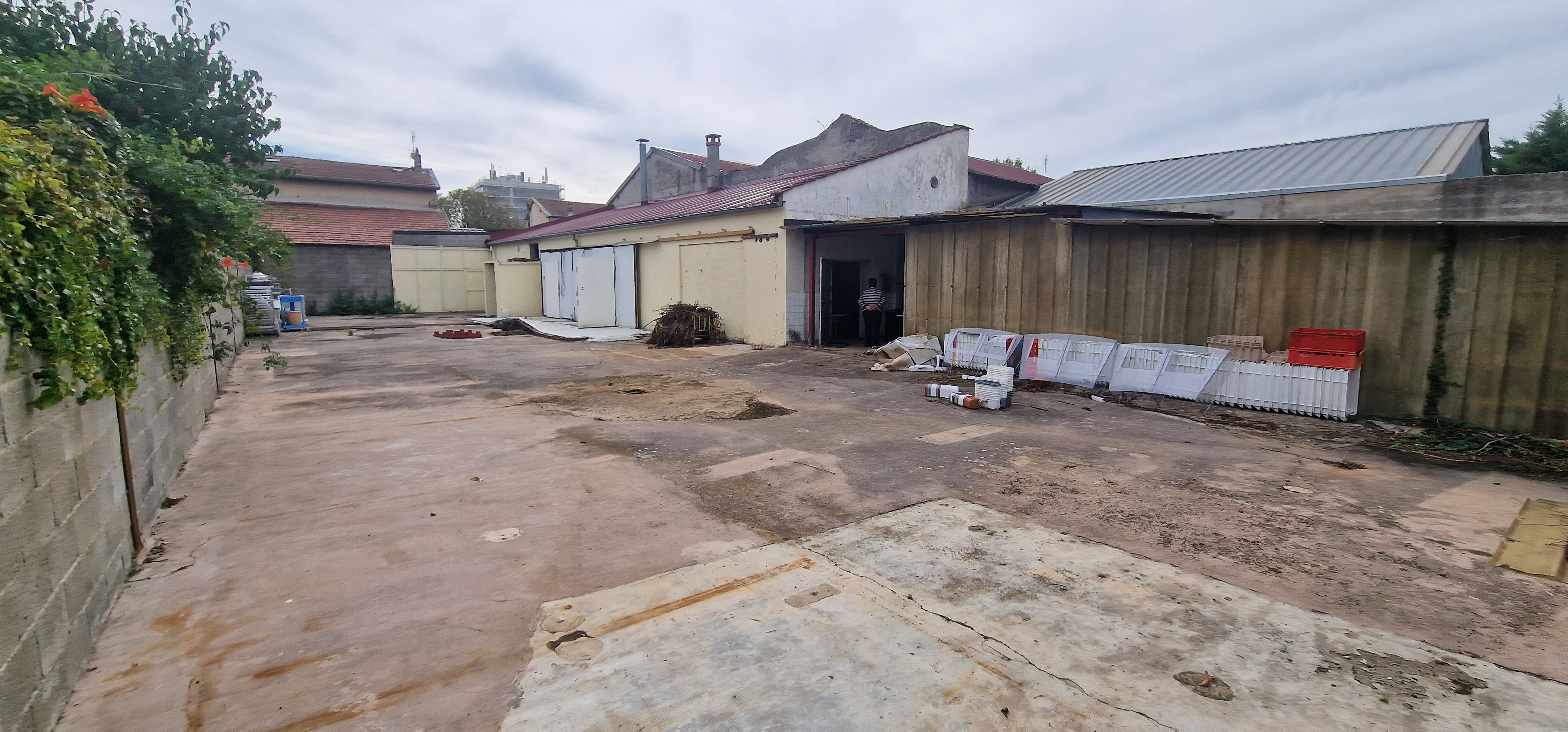 Terrain de 746m2 sur lequel est édifié une petite bâtisse de 20m2 suivie d'un local industriel de 145m2 et plafond à 3,5m.
