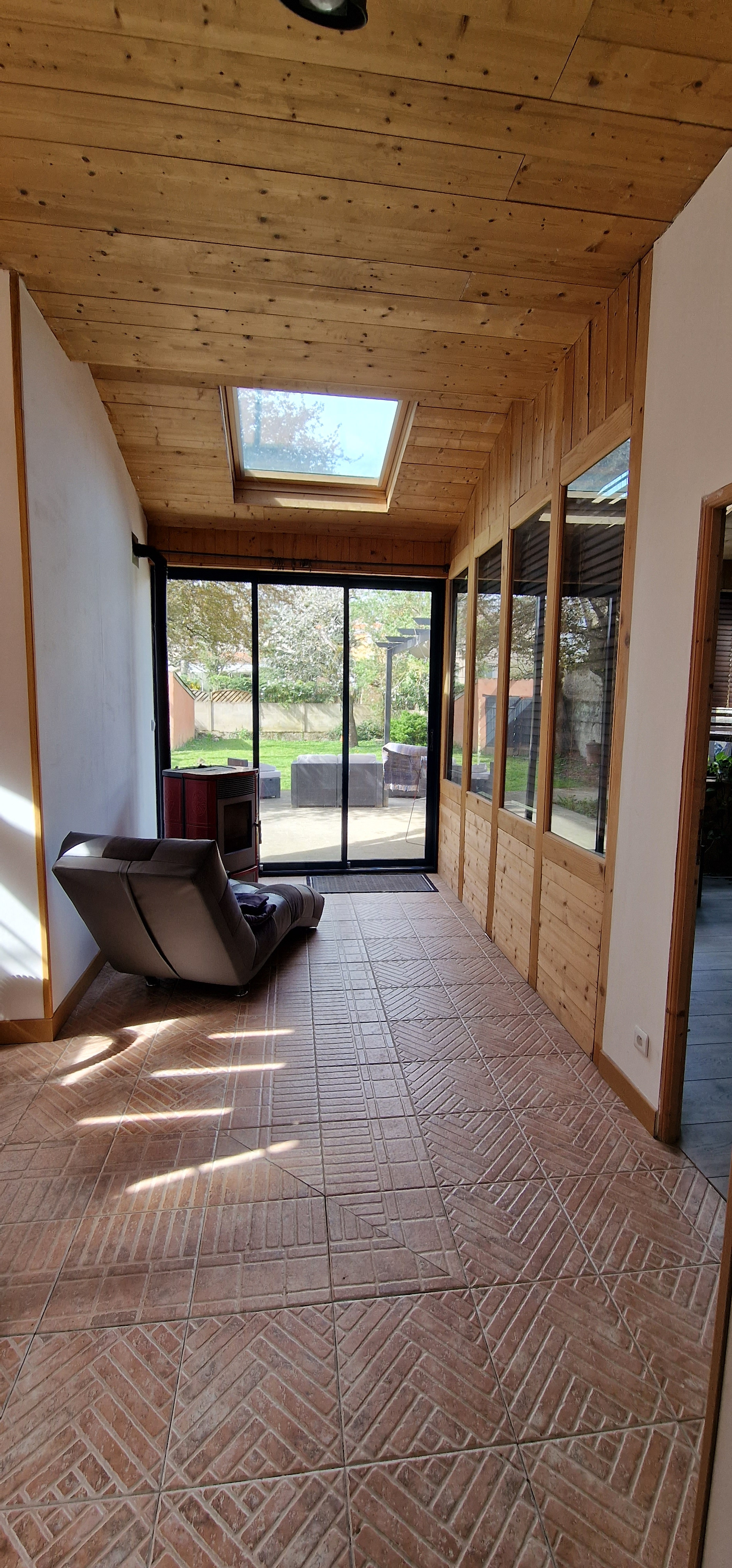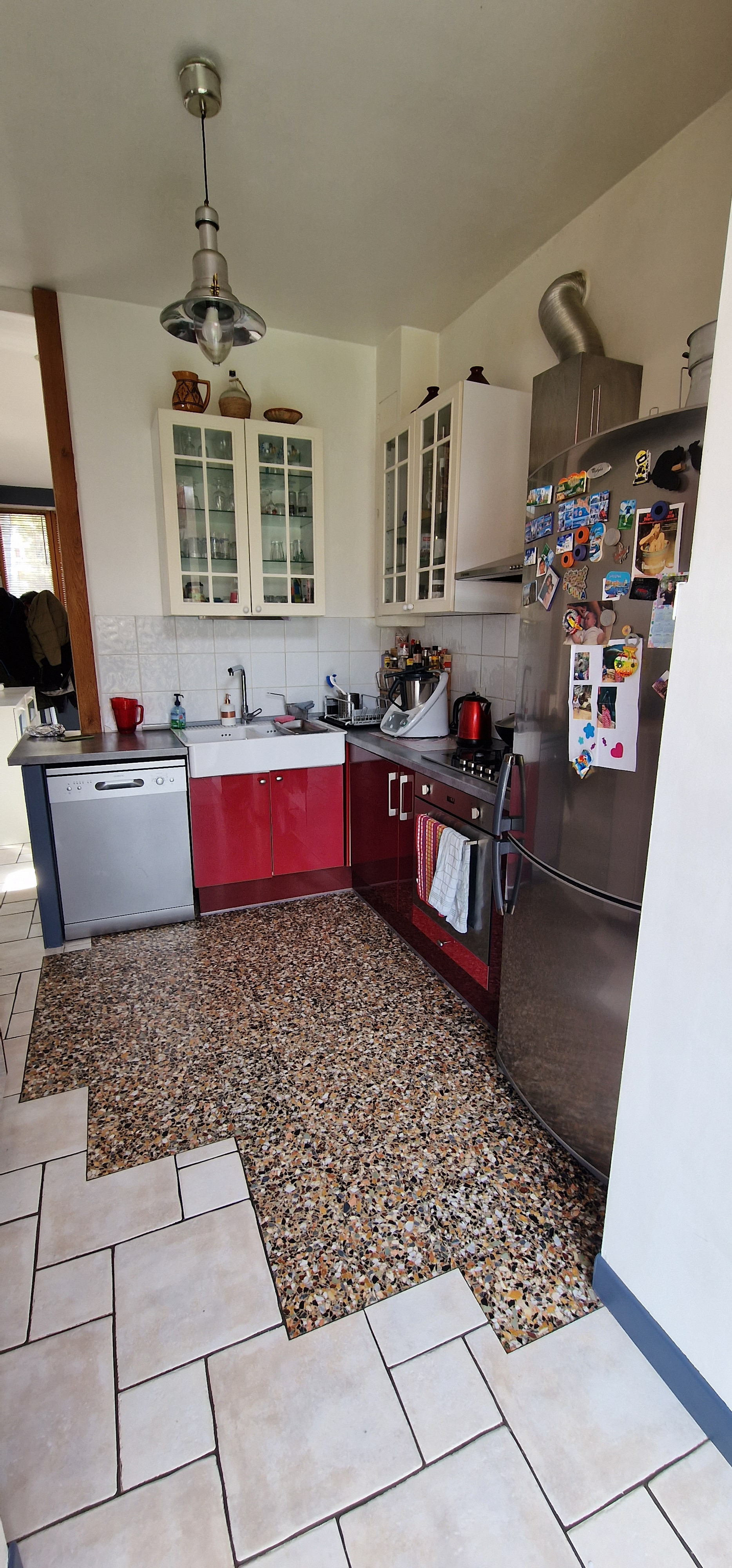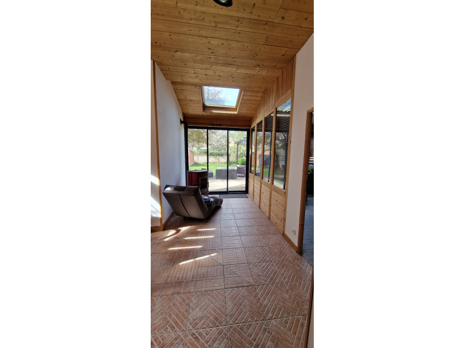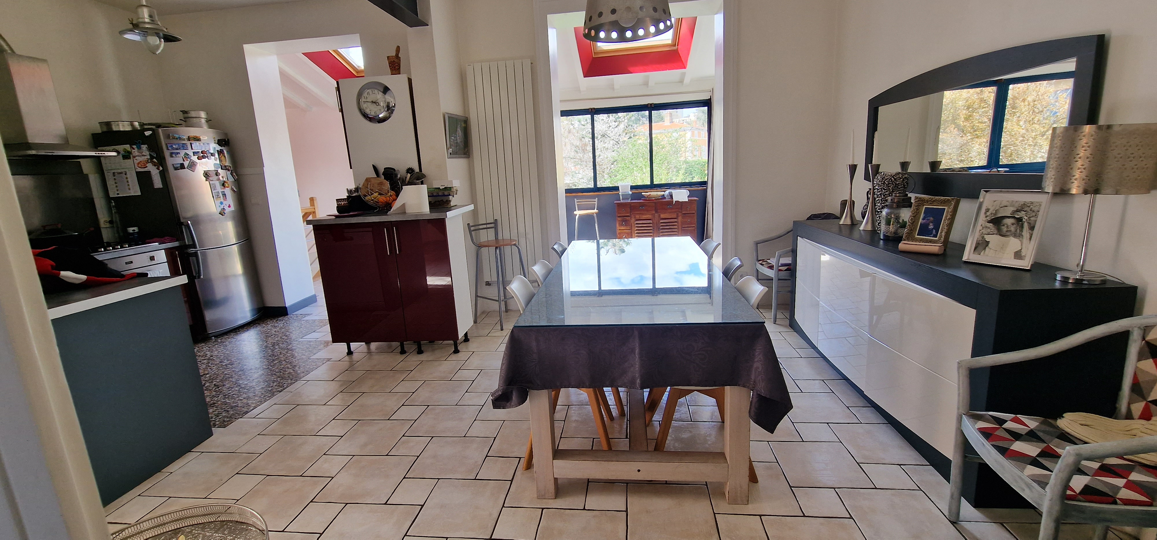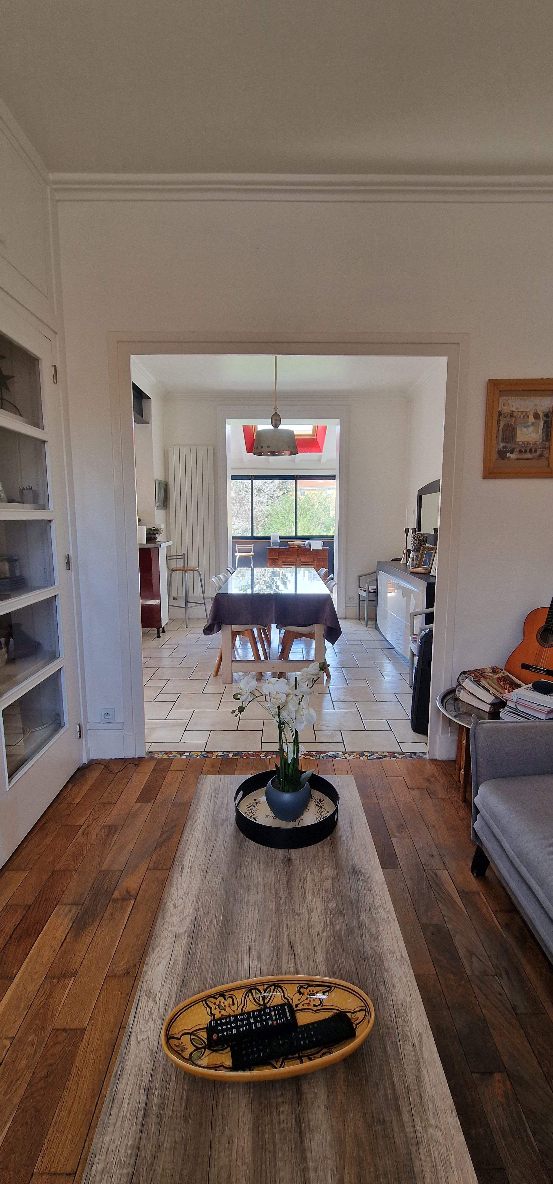 Niveau rue : une très belle pièce de vie avec une immense partie vitrée, lumineuse à souhait ouverte sur la cuisine, un WC