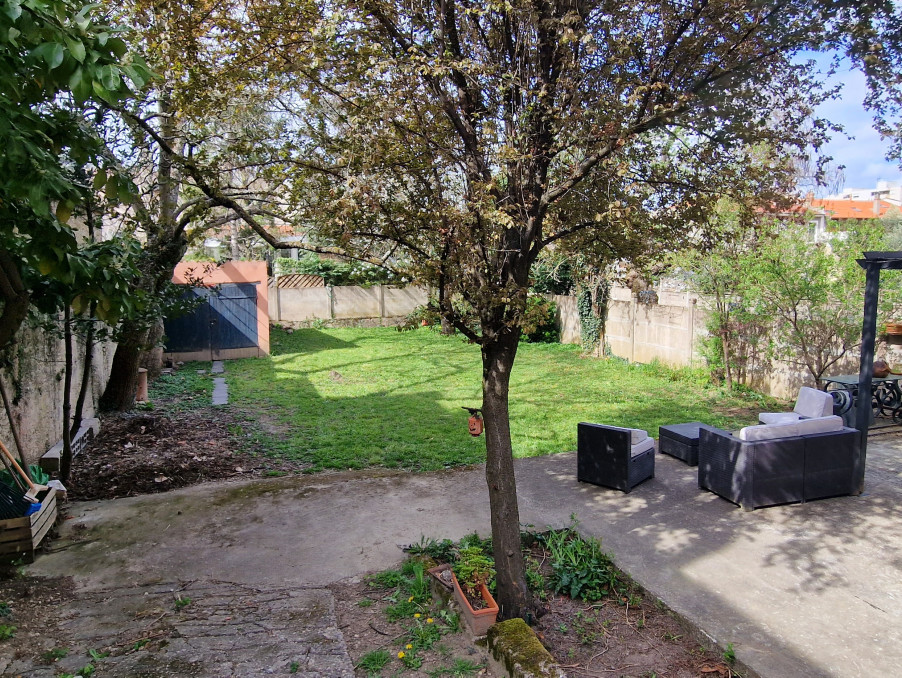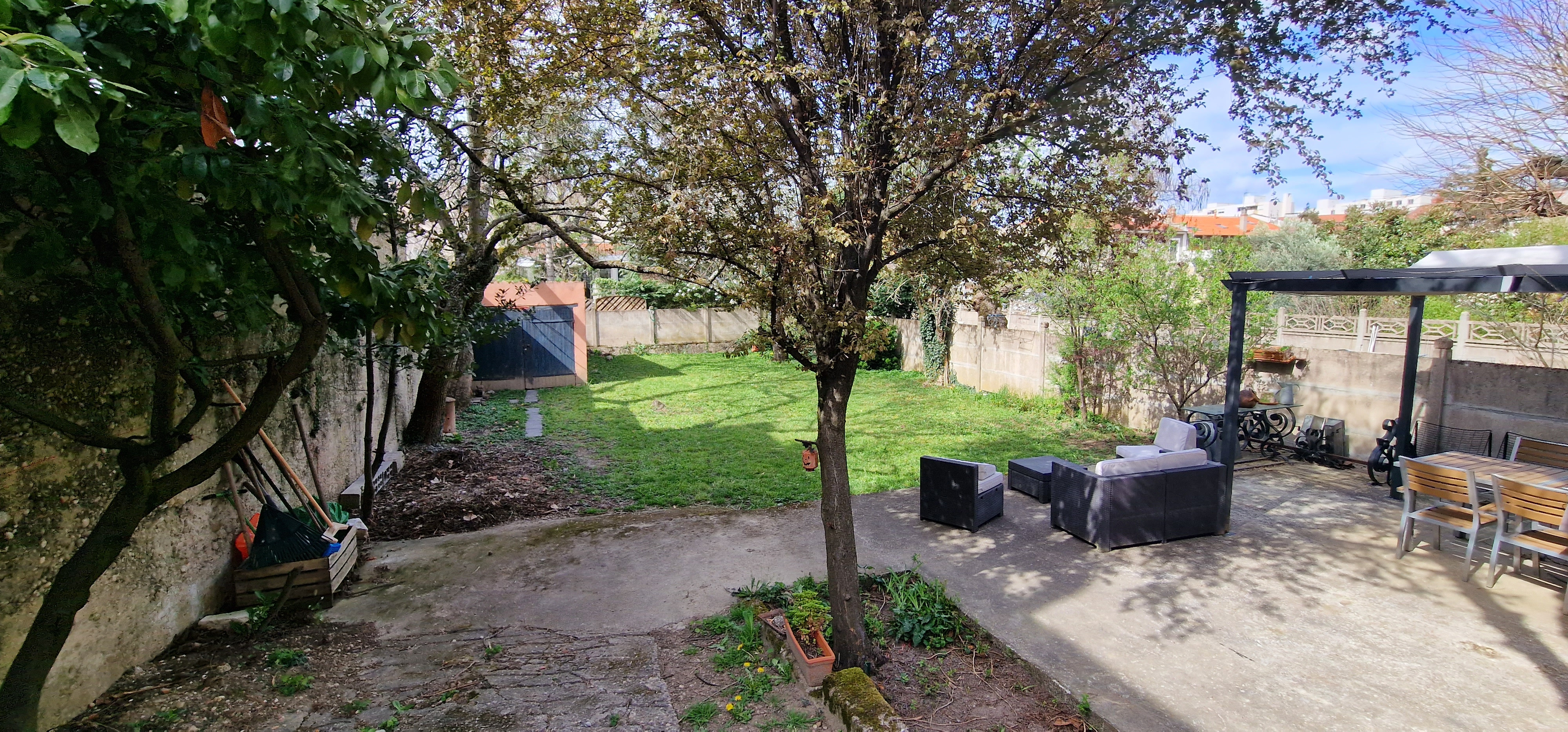 RDJ : une chambre, un coin nuit, une salle d'eau avec WC, une buanderie, le tout donnant sur un magnifique jardin plat, calme et arboré pour les siestes à l'ombre l'été.