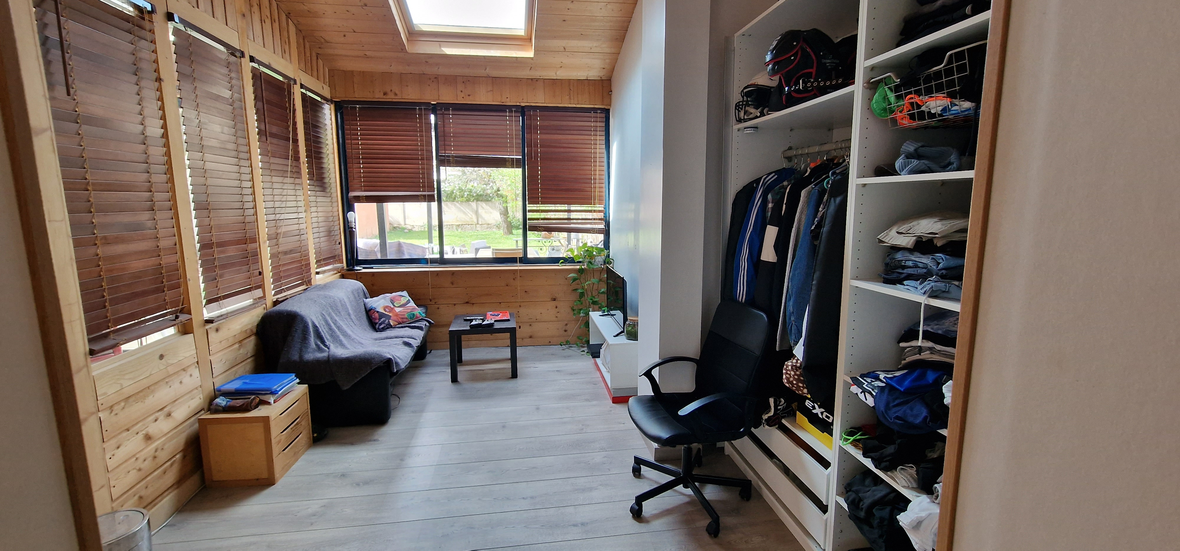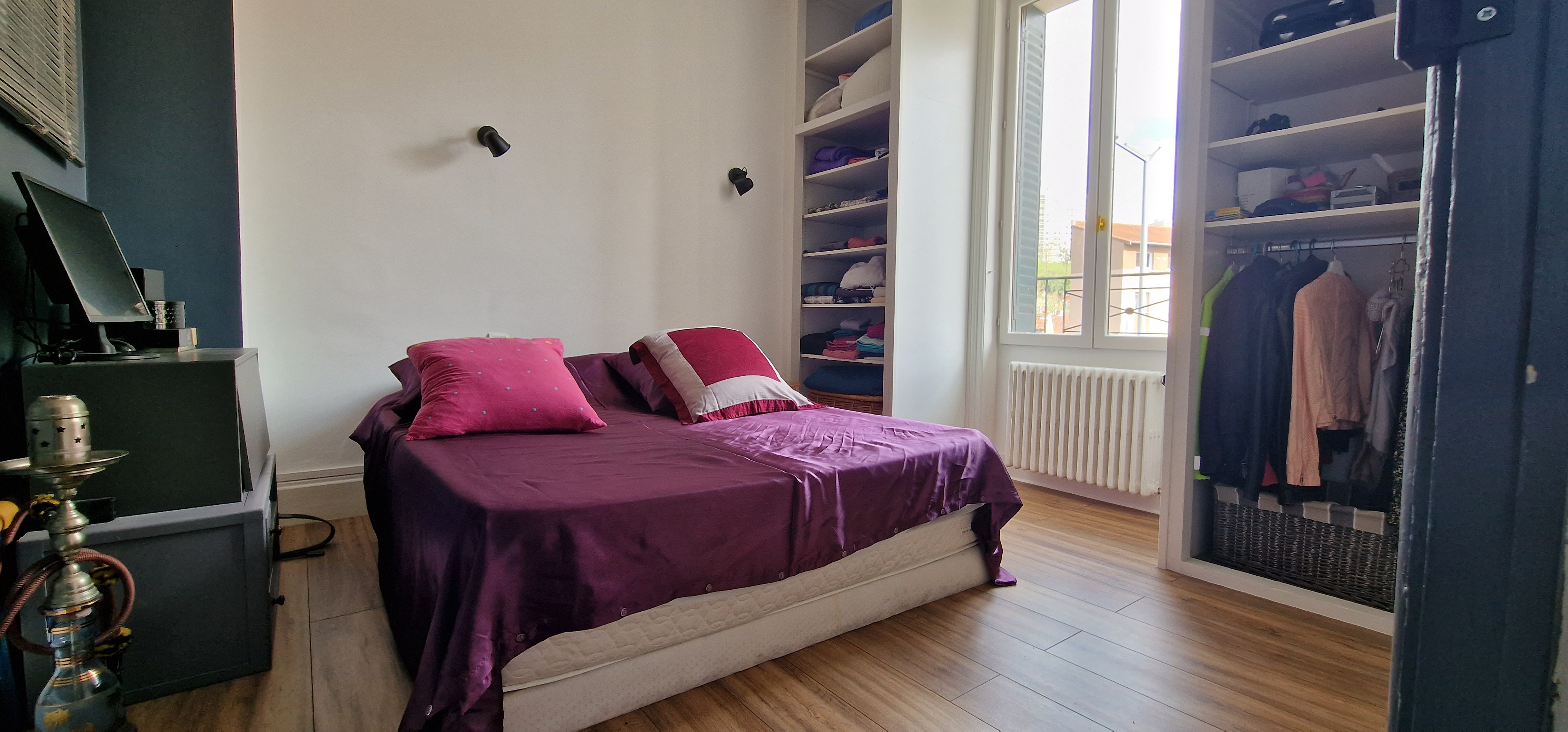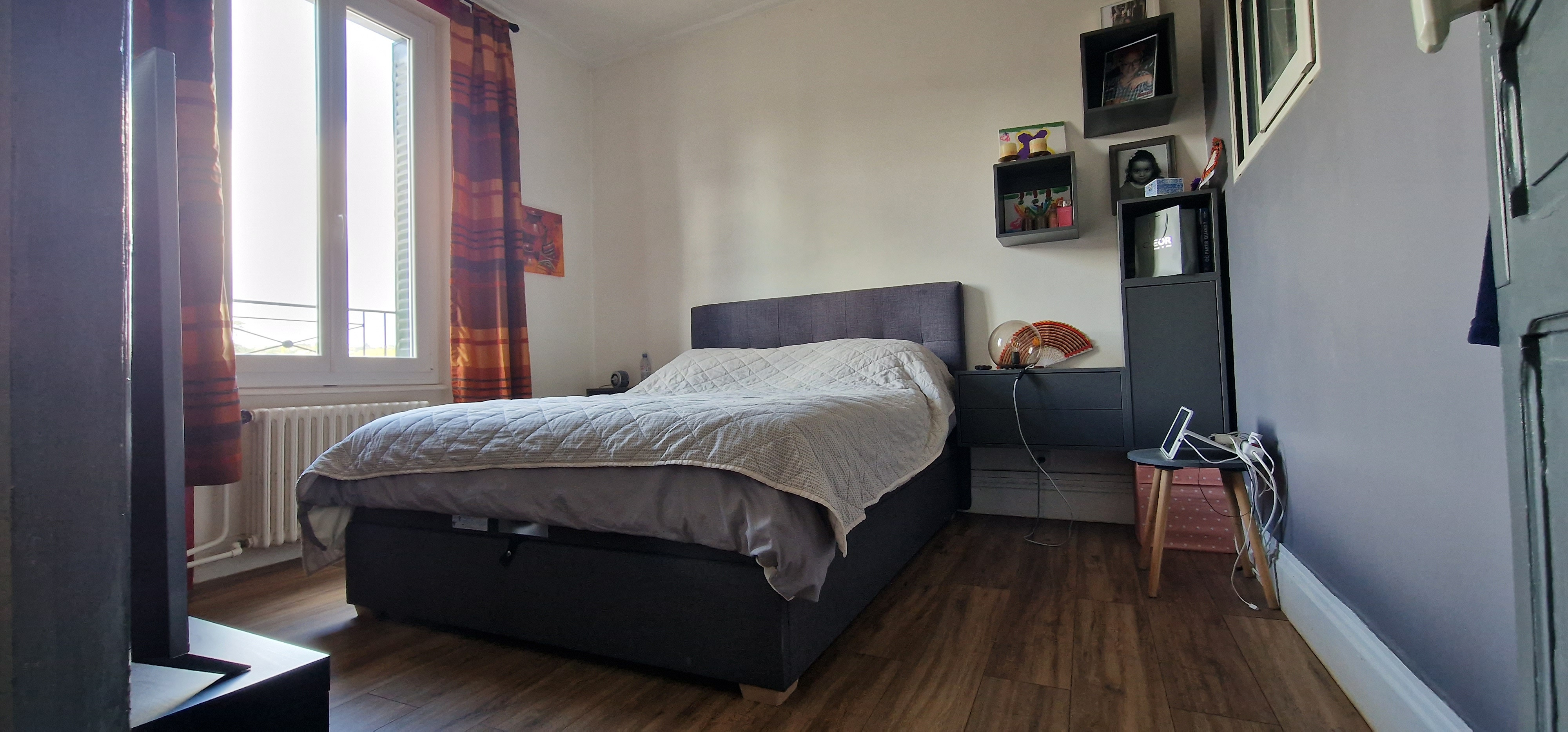 Etage : 2 belles chambres, une pièces de 7 m2 faisant actuellement office de dressing, une salle de bain.